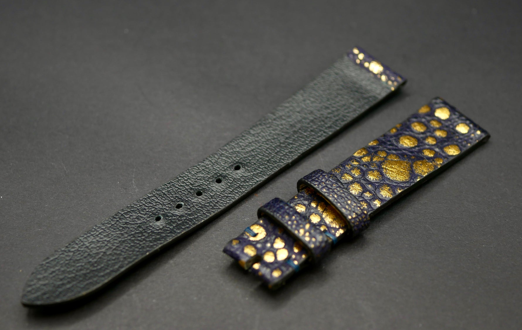 Splendido cinturino realizzato a mano in vera pelle di Rospo (parte superiore) e pelle di vitello per la parte dorsale.