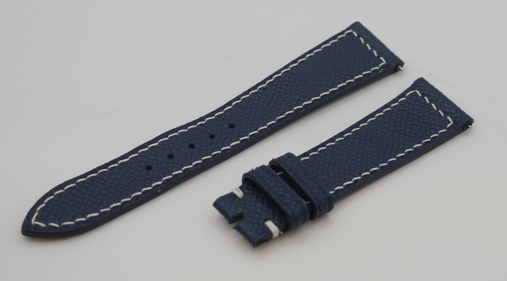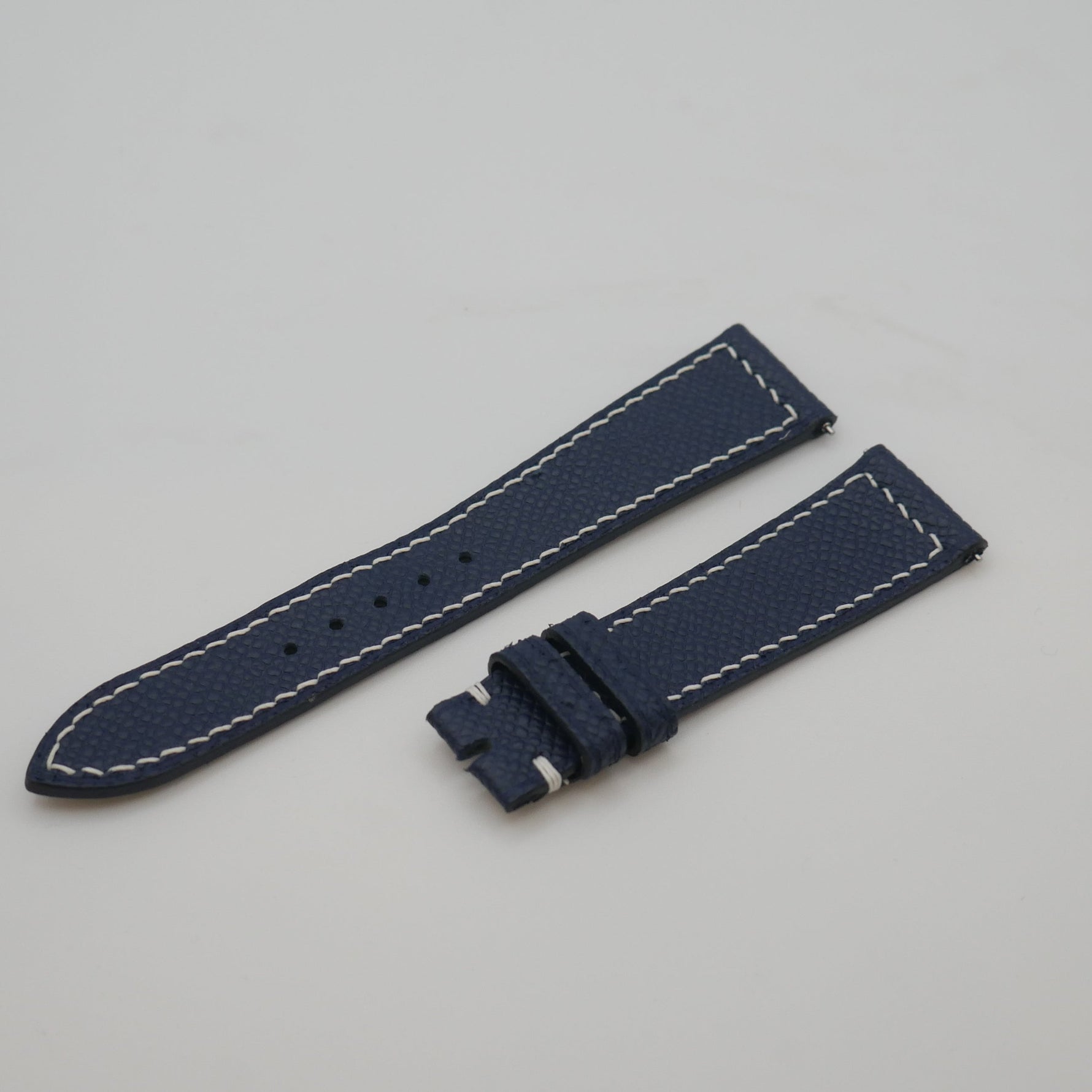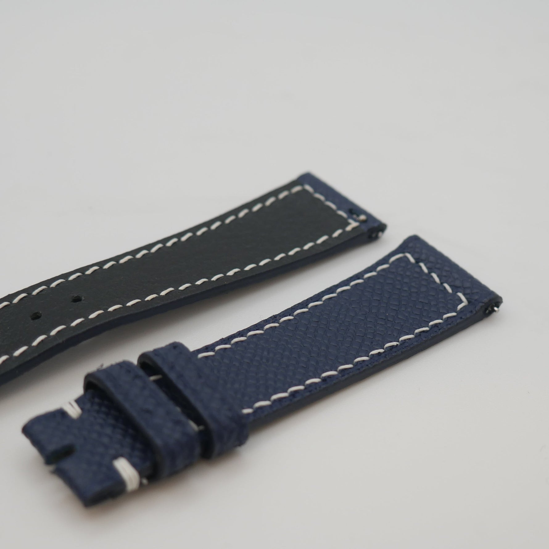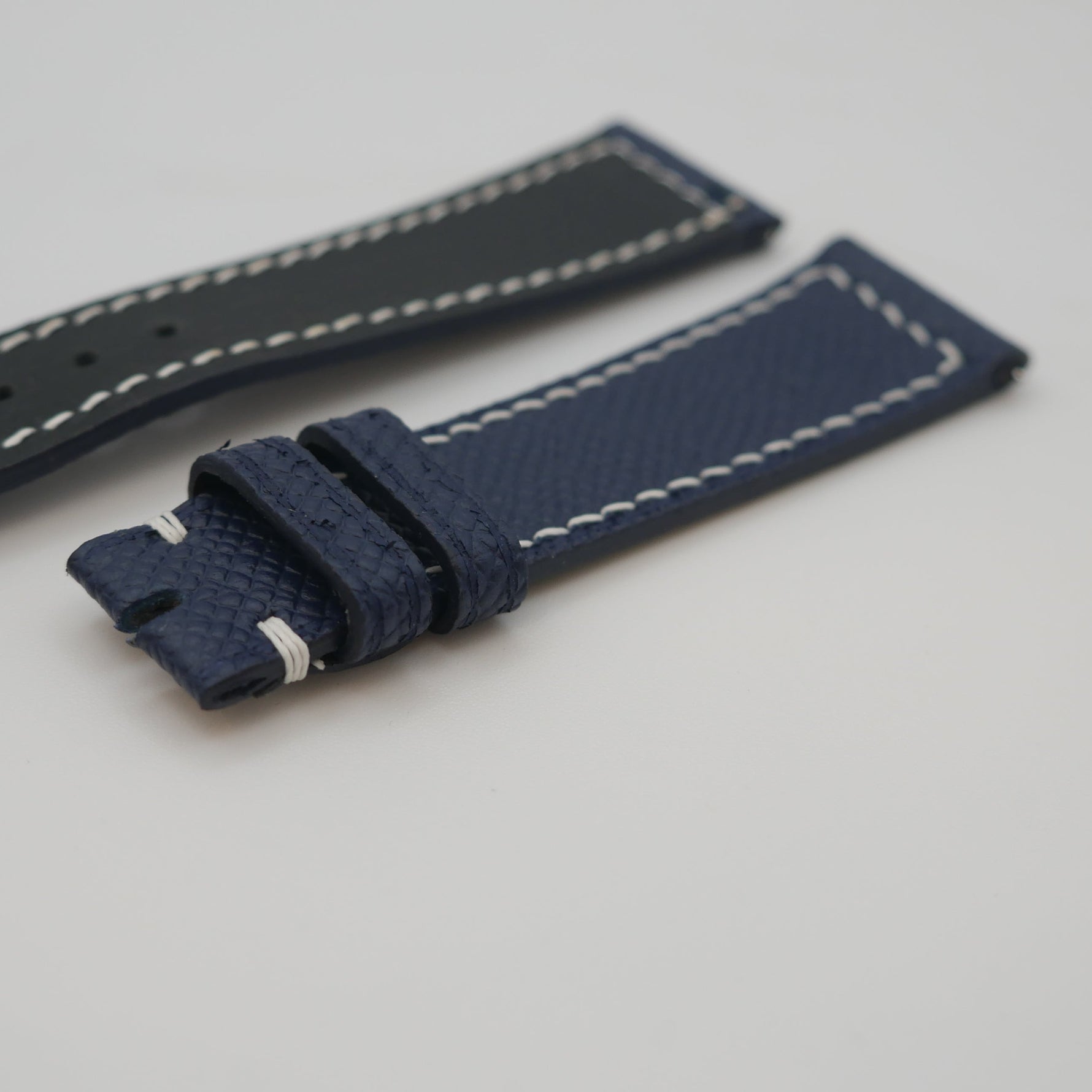 CINTURINO IN VITELLO GOFFRATO BLU CUCITURE BIANCHE