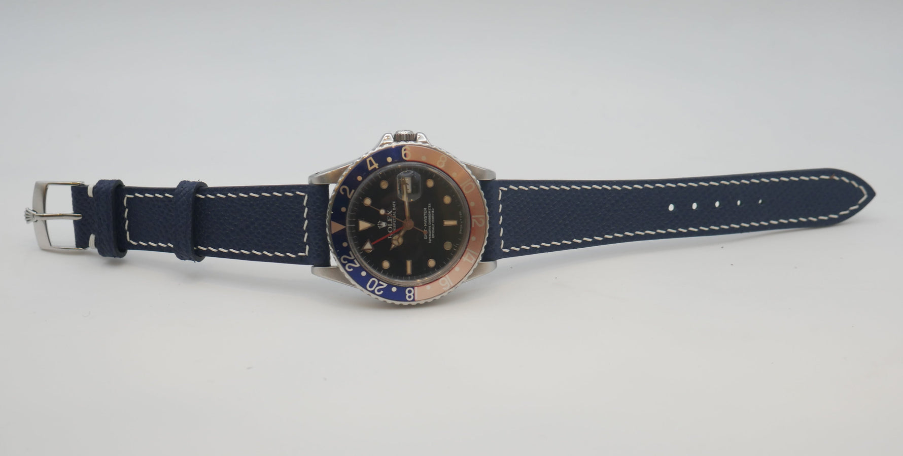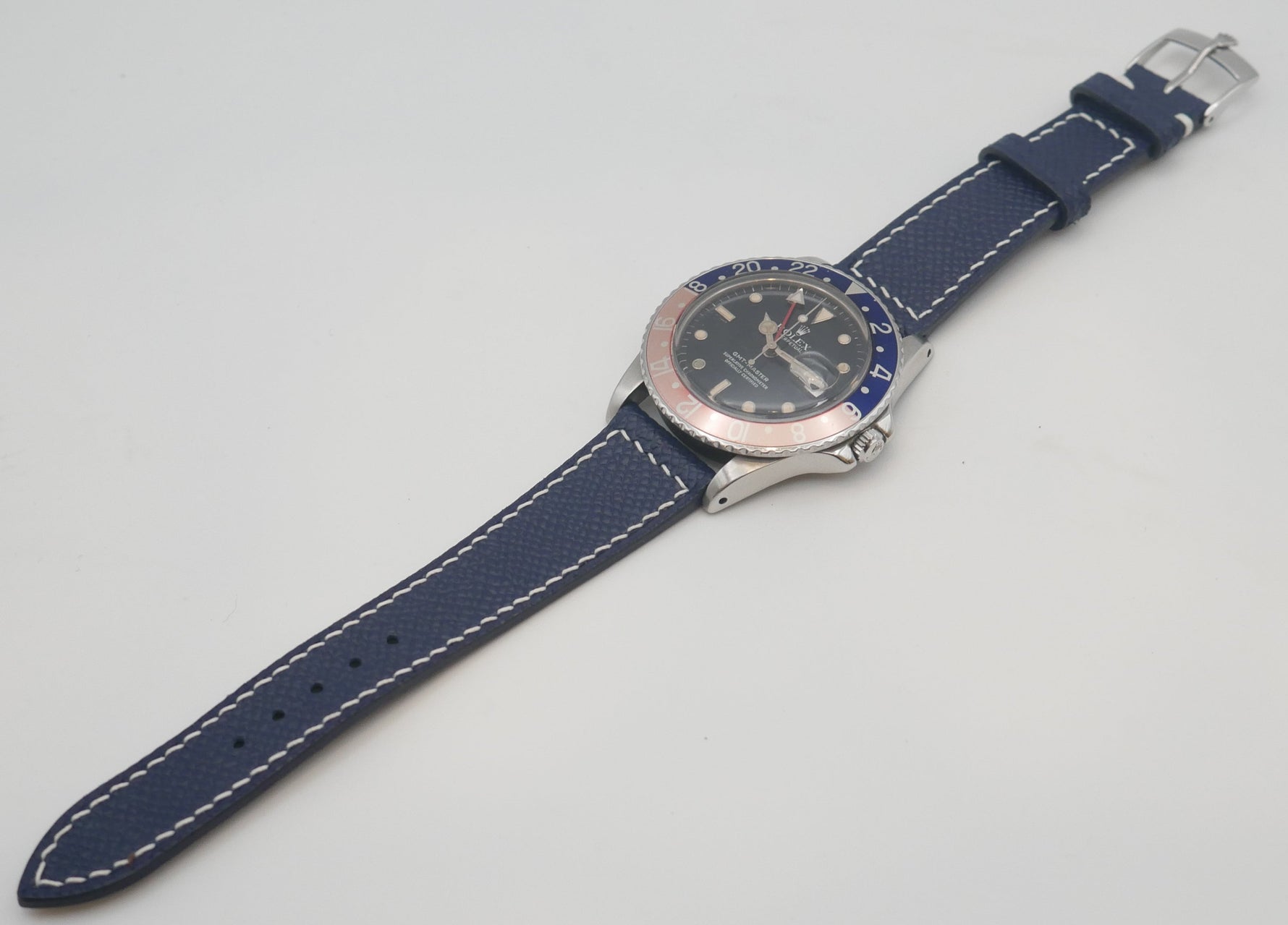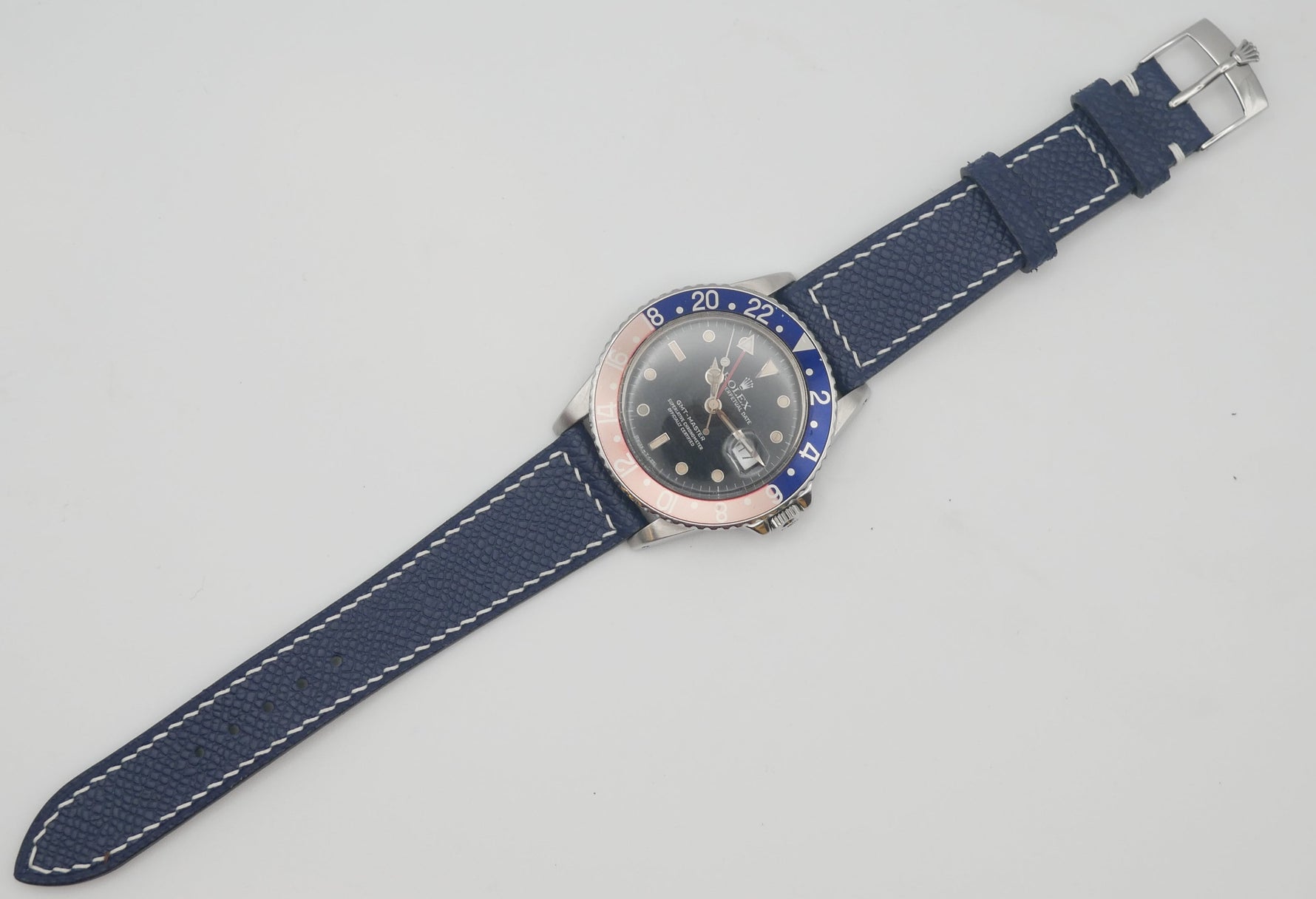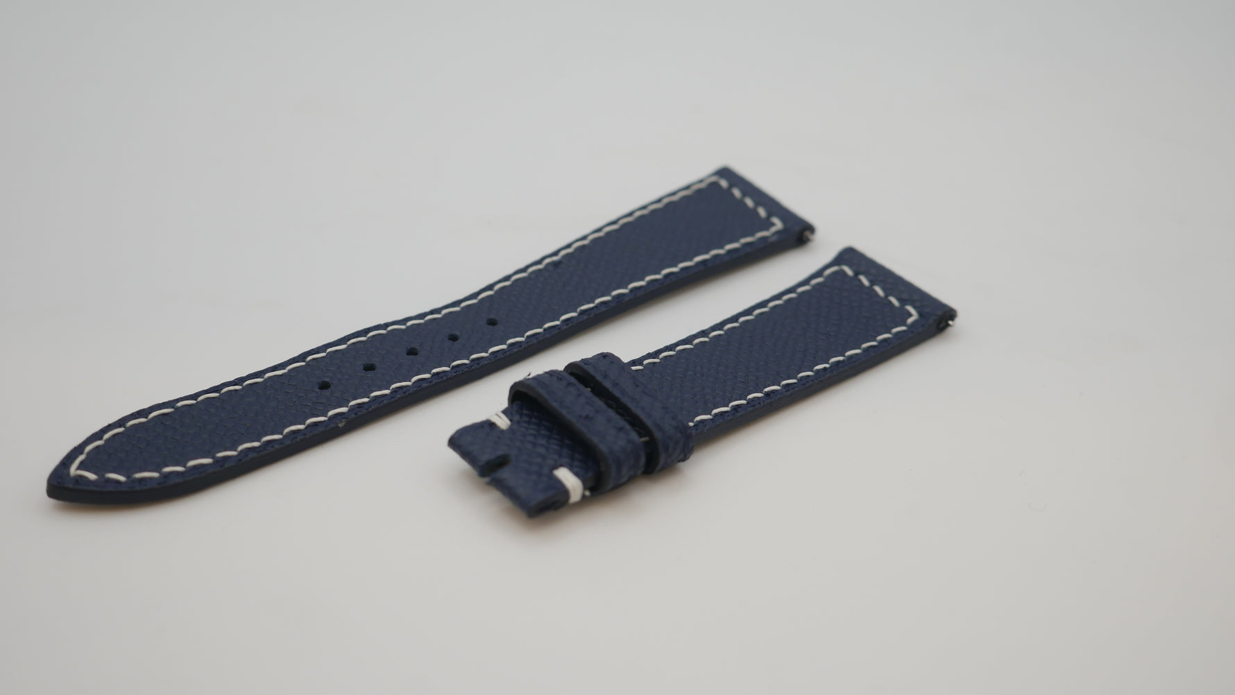 CINTURINO IN VITELLO GOFFRATO BLU CUCITURE BIANCHE